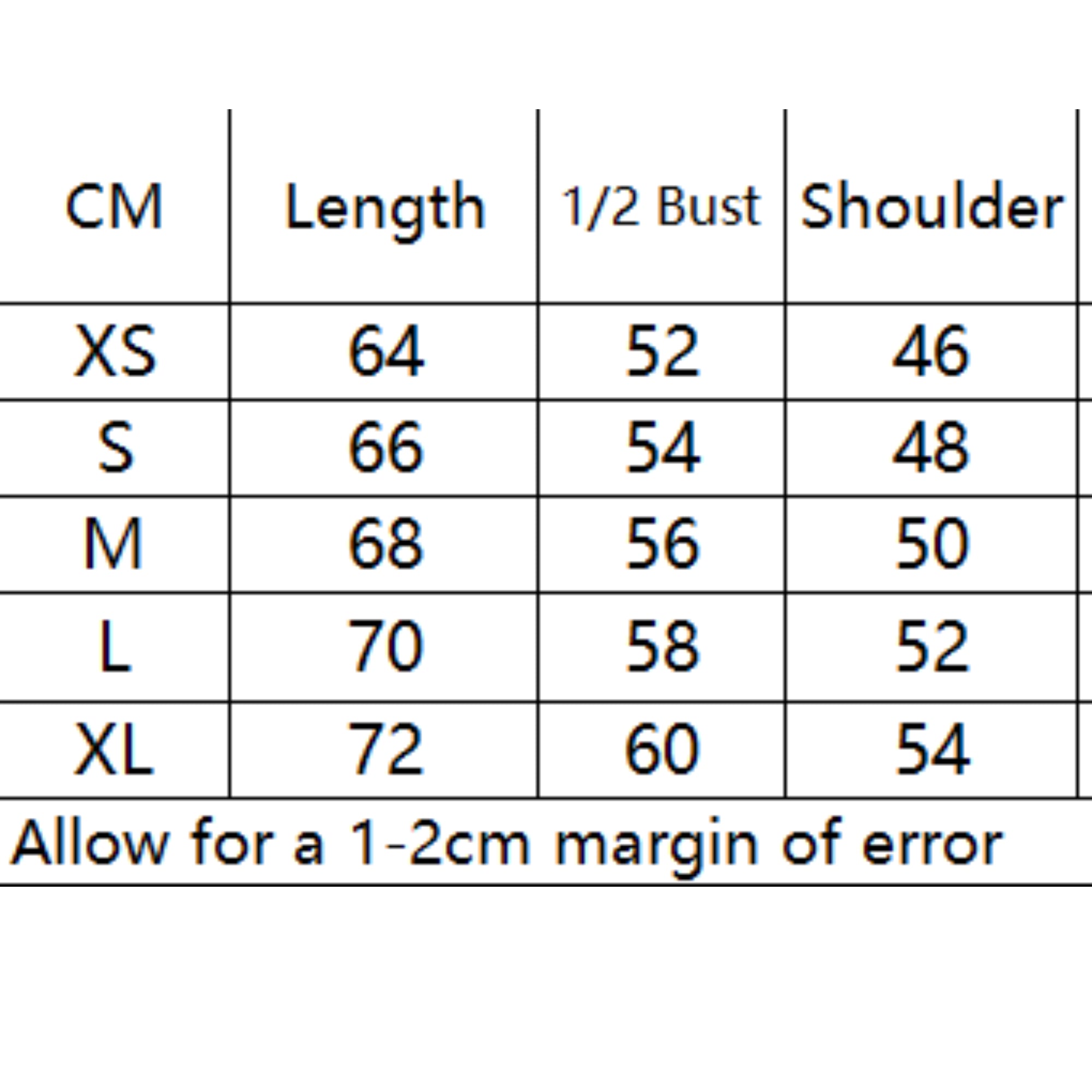 XS:着丈 64 / 身幅 52 / 肩幅 46